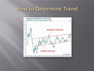 4) How to determine the overall trend and counter-trend using techniques like trend lines and moving averages.