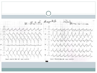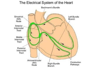 This document provides an overview of electrocardiography (ECG) basics for technicians. It discusses the heart's conduction system and how ECGs work to record electrical activity. The 12 standard ECG leads and their placements are described. Key aspects of normal ECG waveforms and intervals like P waves, QRS complex, T waves, and QT interval are explained. Common abnormalities that can cause changes in axis or abnormal complexes are also summarized. The document concludes with tips on interpreting ECGs and the important aspects to include in an ECG report.