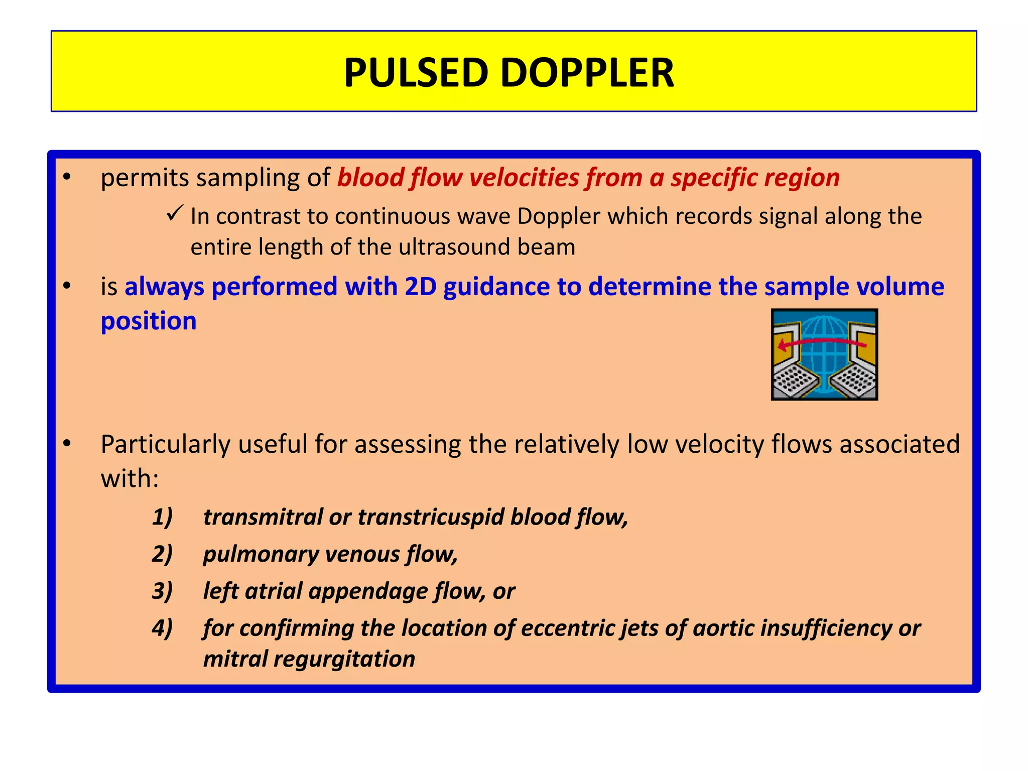 The document covers the fundamentals of echocardiography and Doppler echocardiography, focusing on ultrasound principles, imaging modalities, and techniques used for cardiac evaluation. It discusses key concepts such as frequency, wavelength, resolution, and different imaging approaches including 2D and M-mode echocardiography. Additionally, it explains Doppler principles for measuring blood flow, spectral analysis, and various Doppler methods employed in cardiac assessments.