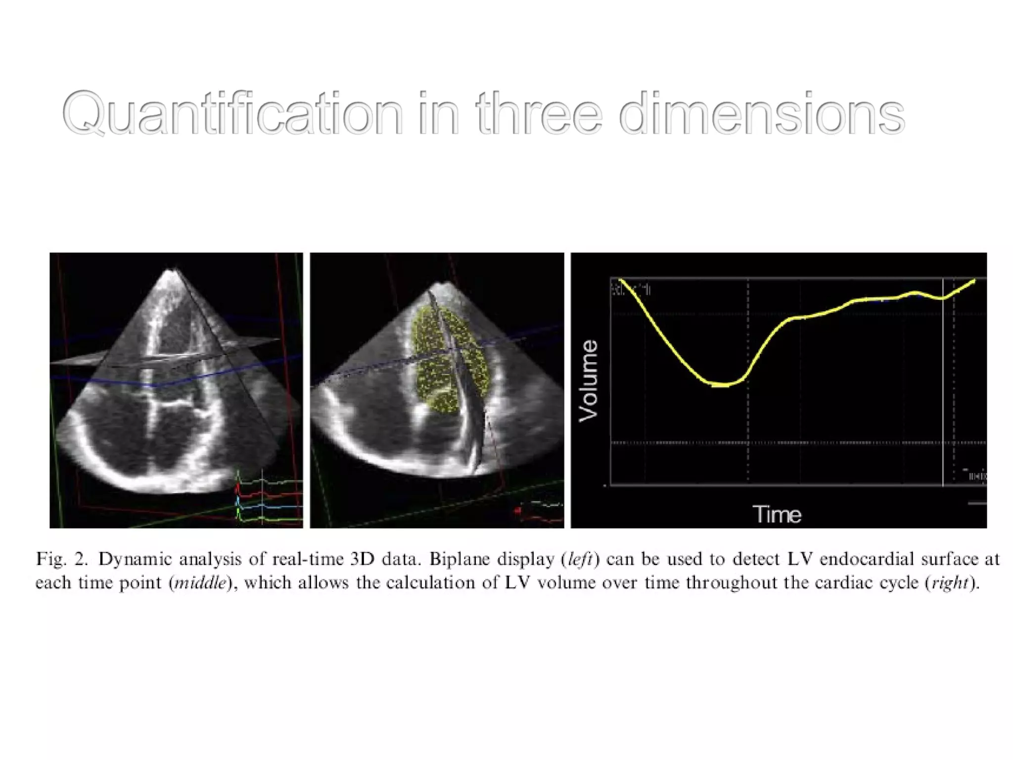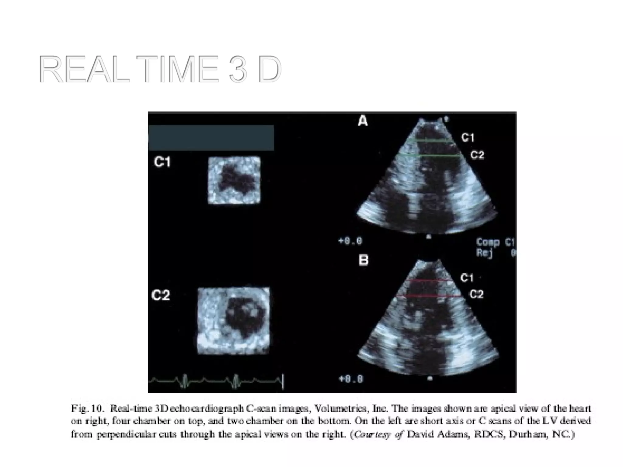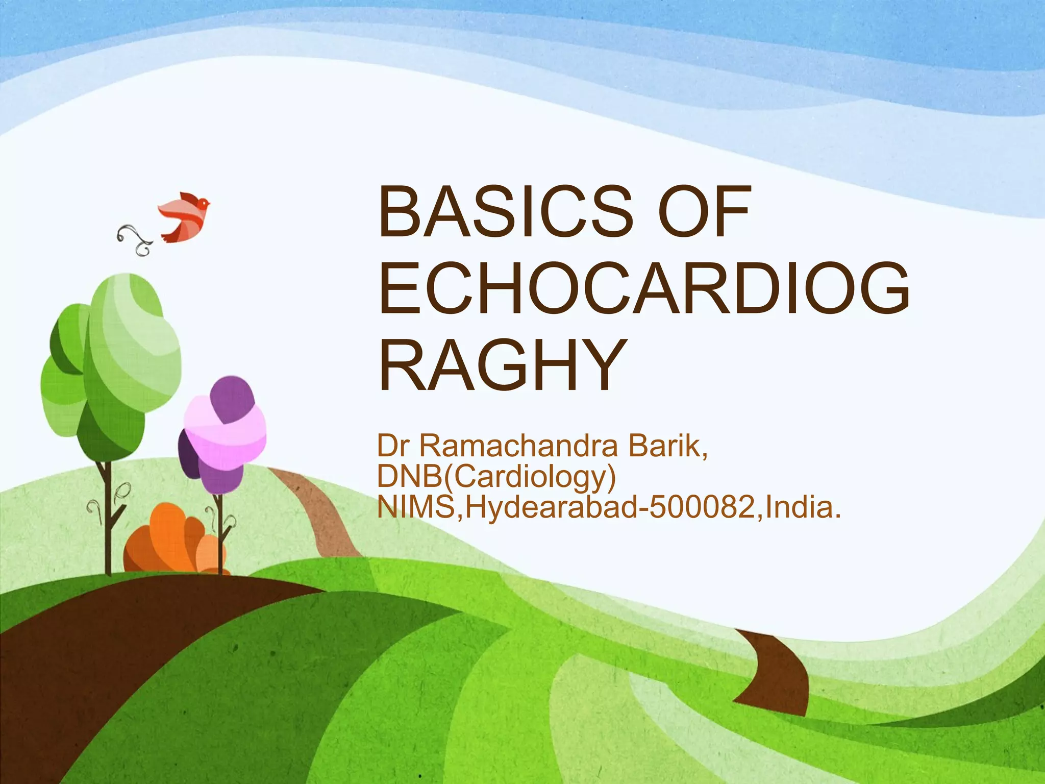 This document provides an overview of the basics of echocardiography. It discusses how ultrasound is directed and focused, and how it behaves differently in gaseous versus soft tissue mediums. The concepts of attenuation, wavelength, resolution and frame rate are explained. Details are provided about transducer design and how 2D and 3D imaging work. Normal echocardiographic measurements of cardiac structures like the left ventricle and valves are listed. Advantages of 3D echocardiography including more accurate volumetric analysis are highlighted.