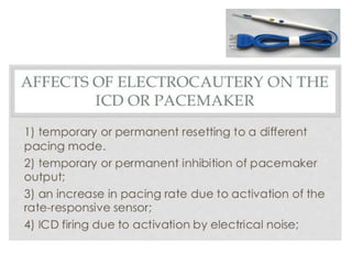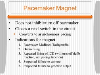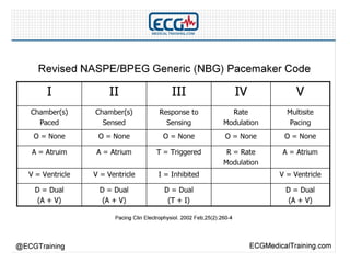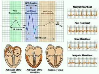 This document provides an overview of electrocardiography (ECG), including basics of the cardiac conduction system, ECG leads and recording methodology, normal ECG waveforms and intervals, cardiac arrhythmias, and pacemakers. Key topics covered include the standard 12-lead ECG, techniques for interpreting rate, rhythm, intervals, and axis, common normal variants and abnormalities, types of arrhythmias including sinus, atrial, and ventricular rhythms, and basics of cardiac pacemaker function. The document serves as an educational guide for understanding ECGs and their clinical applications.