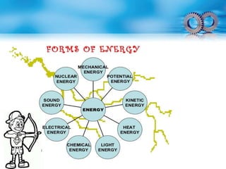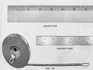 The document provides an overview of various topics in mechanical engineering presented by K. Prudhvi Rahul. It begins with listing the topics to be covered, including basics of ME, units and measurements, measuring instruments, mechanical equipment, manufacturing processes, codes and standards, measurement techniques, HVAC systems, heat transfer, material handling, material properties, IC engines, hydraulic machines, and strength of materials. It then defines mechanical engineering and the role of mechanical engineers. Key concepts discussed include forces, types of forces, friction, energy, motion, measurements and units. Various measuring instruments are also introduced such as rulers, calipers, micrometers, dial indicators, feeler gauges, and pressure gauges.