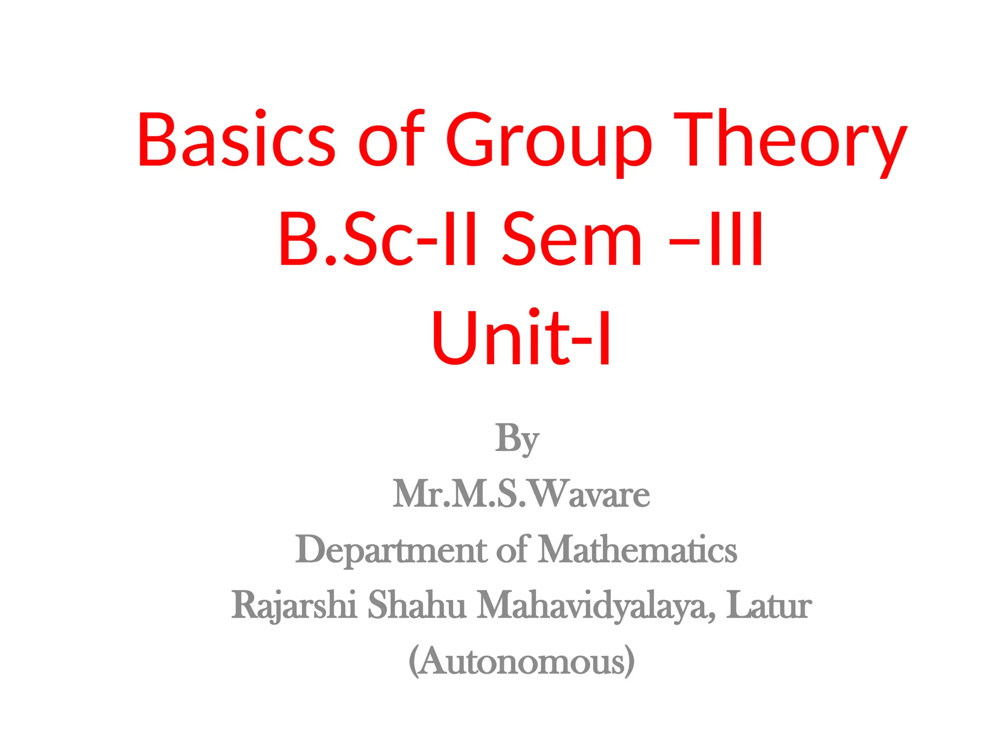Basics of GroupTheory