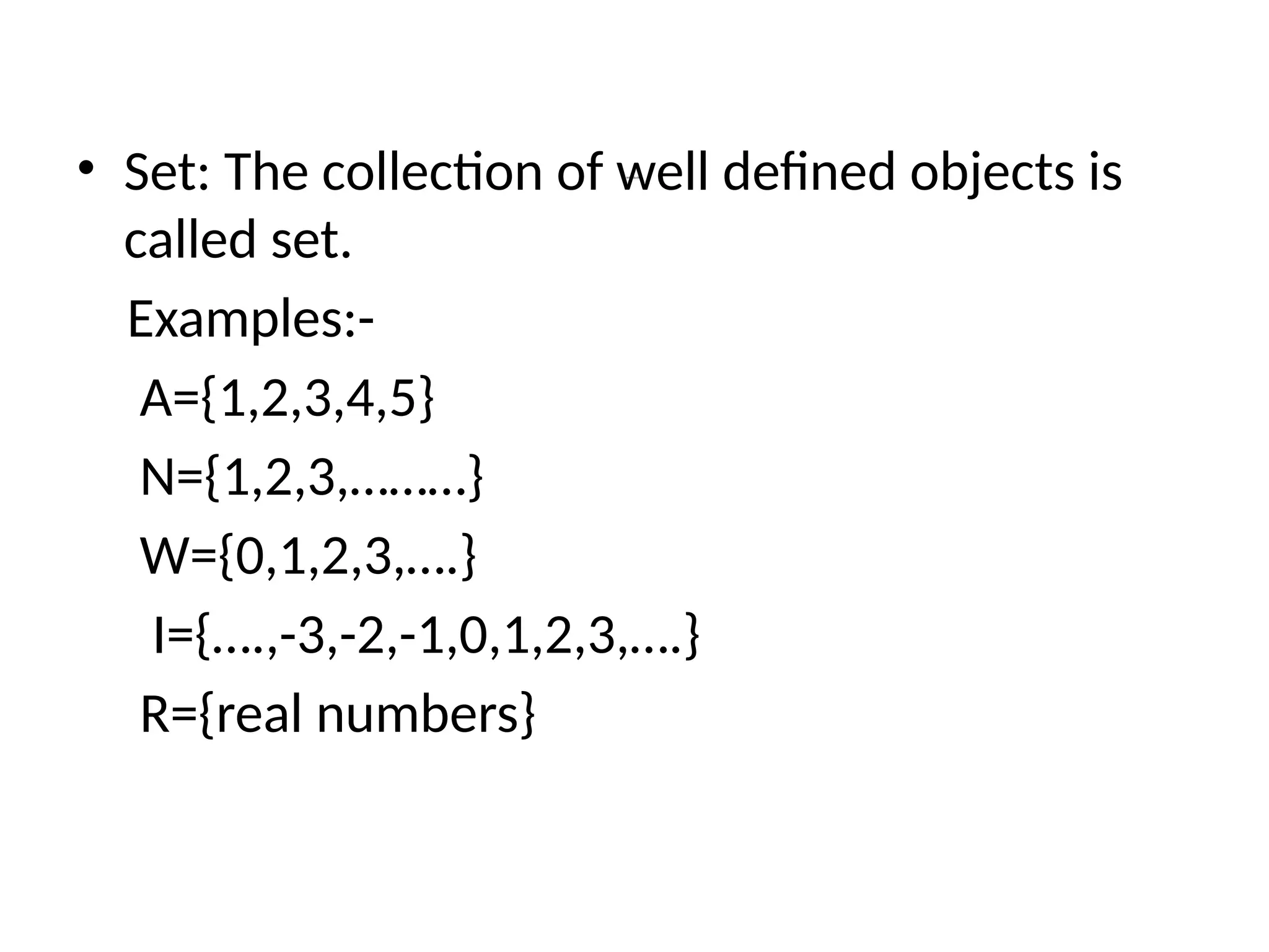 • Set: Thecollection of well defined objects is