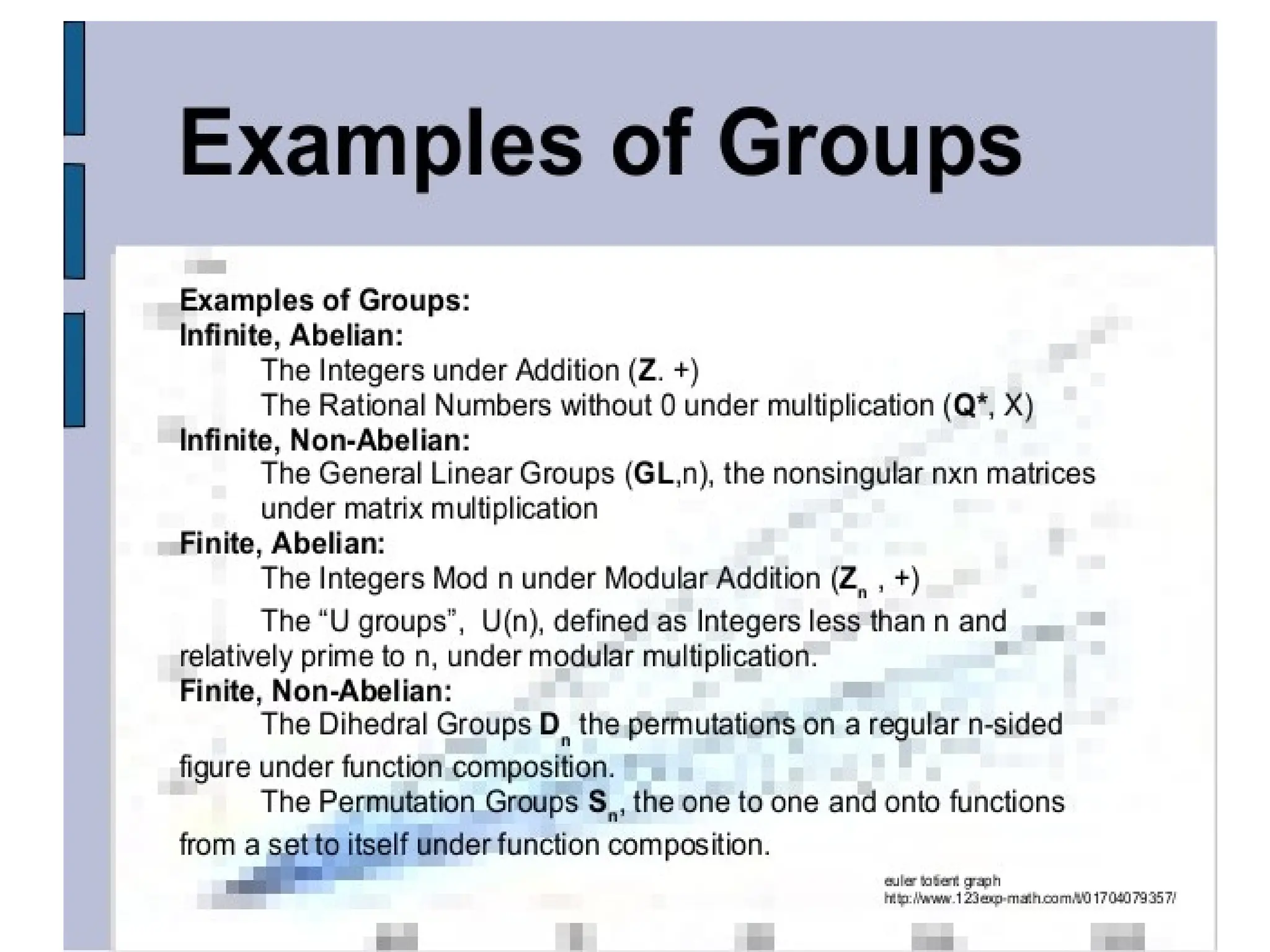 • Examples: Z is an infinite cyclic group and