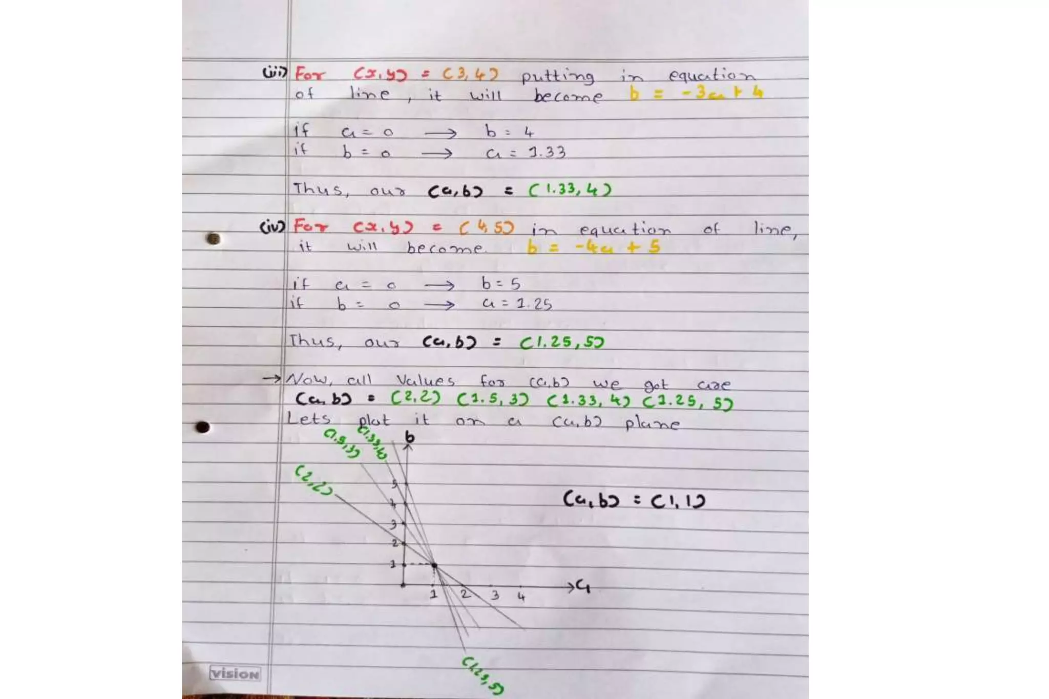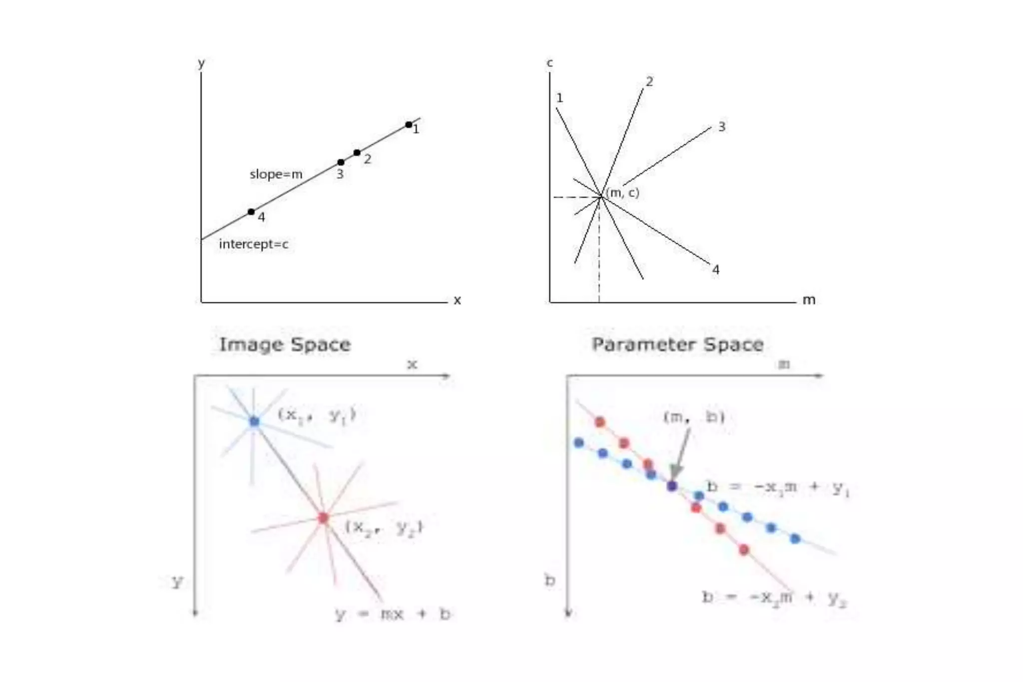 The Hough transform is a feature extraction technique used in image analysis and computer vision to detect shapes and patterns, like lines, circles, and curves. It works by having each edge point in an image vote for a set of possible shape parameters, which are then compiled into a histogram in a parameter space. Local maxima in this space correspond to the most likely shapes in the image. Specifically for line detection, the Hough transform represents a line using its slope (a) and intercept (b), with each edge point voting for all lines passing through it in the parameter space. The algorithm then finds local maxima in this space to detect the lines present in the image. The Hough transform is robust to noise, gaps,