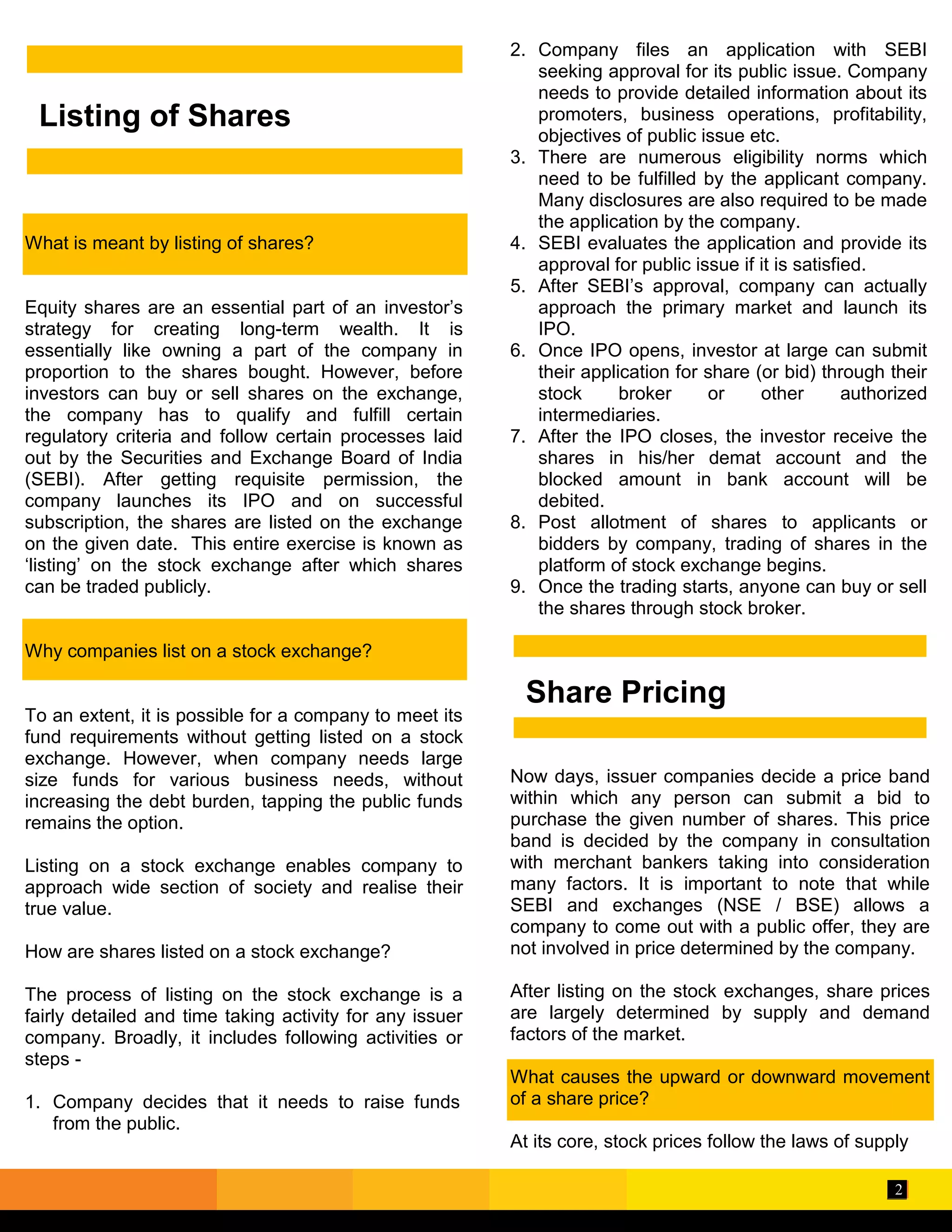 The document provides information about listing and trading of shares on a stock exchange. It discusses: