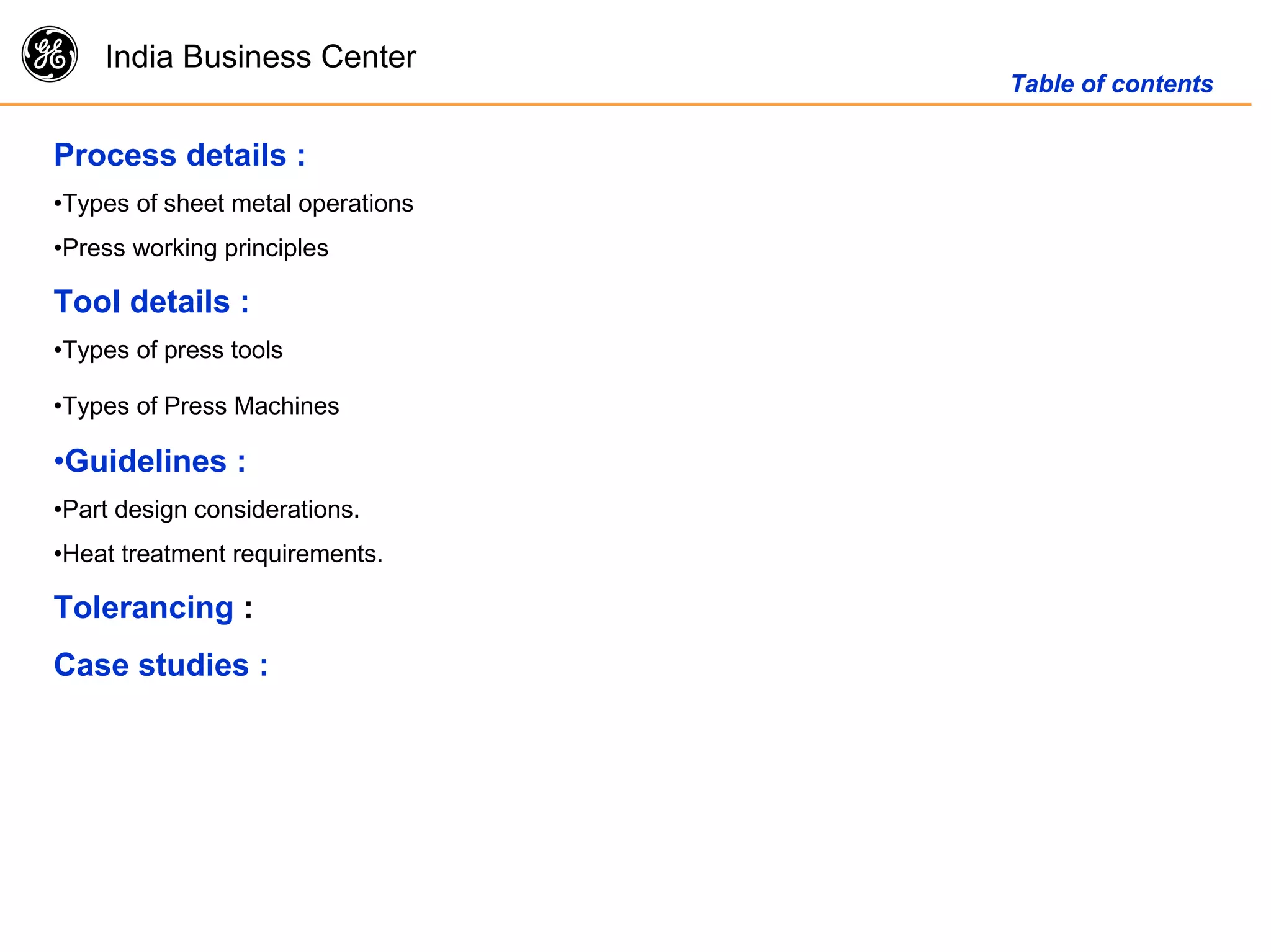 This document provides guidelines and considerations for designing sheet metal parts that can be efficiently manufactured. It discusses various sheet metal forming processes like blanking, piercing, bending, deep drawing and provides examples of different press tools. It also outlines guidelines for blank and hole design to enable economical manufacturing like minimum section sizes, radii on corners, hole diameters relative to material thickness. Process details covered include principles of plastic deformation and shearing, effects of cutting clearance and calculating flat blank length for bending.