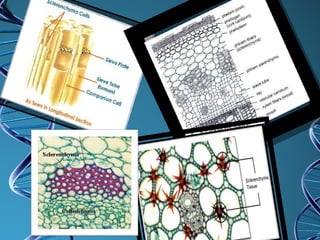 Tissue is an organizational level between cells and organs. There are four basic types of animal tissue: connective, muscle, nervous, and epithelial. Connective tissue holds organs together and has fibers. Muscle tissue produces movement. Nervous tissue forms the brain and nerves. Epithelial tissue forms protective barriers around organs. Plant tissues include vascular, ground, and epidermal tissues which transport fluids, store nutrients, and form surfaces. Meristematic tissues enable plant growth. Tissues differentiate into permanent simple tissues like parenchyma and complex tissues like xylem and phloem which transport water and nutrients.