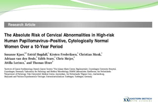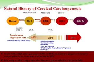The document discusses the role of HPV DNA testing in the screening and early detection of cervical precancers, outlining its significant association with cervical cancer progression and the importance of timely treatment. It emphasizes the advantages of integrating HPV testing alongside cytology for improved diagnostic efficacy and reduced cervical cancer incidence. The findings underscore that HPV testing can identify high-risk individuals, thereby enabling better management and surveillance strategies for those at risk of cervical cancer.