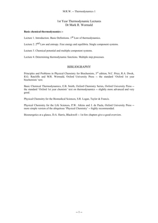 - The lectures will cover topics including the first and second laws of thermodynamics, entropy, free energy, and determining thermodynamic functions.