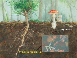 The document provides an overview of basidiomycetes, a phylum of fungi that includes mushrooms, important plant pathogens, and decomposers in ecosystems. It describes their structure, reproduction, and lifecycle, emphasizing the role of basidia and ballistospores in their reproduction. Significantly, it highlights the trophic relationships between basidiomycetes and plants, particularly through mycorrhizal associations.