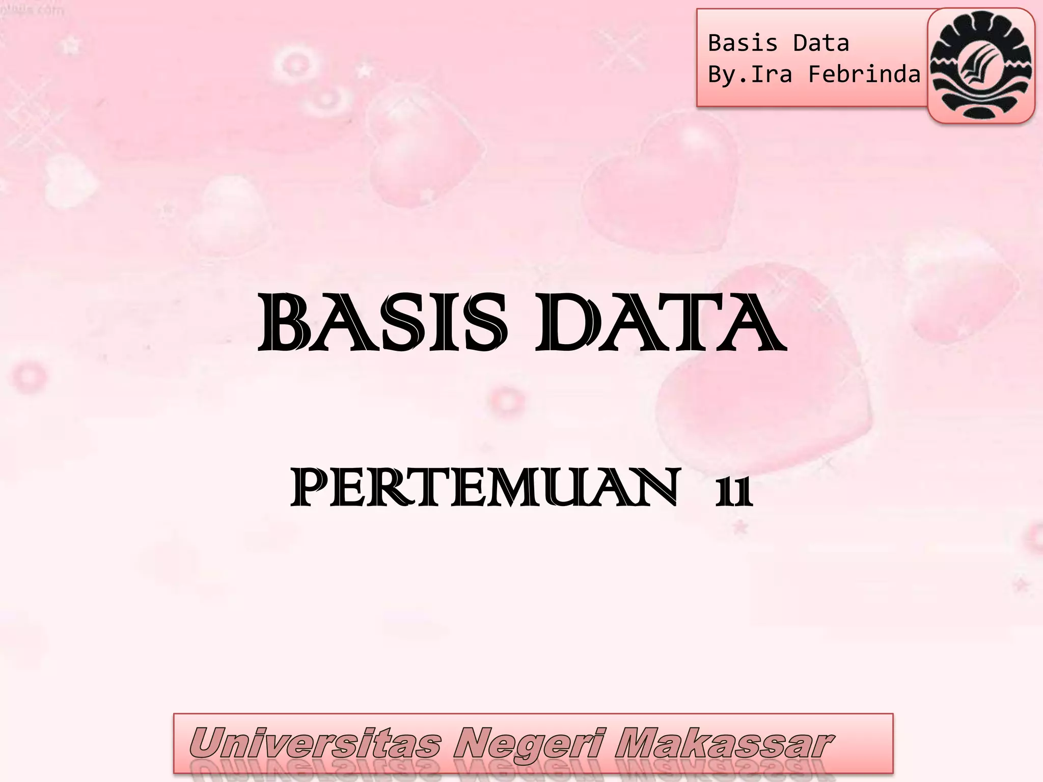 Dokumen ini membahas tentang desain dan implementasi basis data menggunakan XML, termasuk penetapan kunci utama, pengaturan batasan, dan penyimpanan elemen berulang dalam tabel yang berbeda. Juga dijelaskan dua metode pemetaan untuk dokumen XML, yaitu metode pemetaan yang memerlukan skema dan metode XPath yang tidak memerlukan skema. Selain itu, dokumen ini menjelaskan tantangan dalam mengonversi data dari tabel basis data ke dokumen XML dan menjelaskan pentingnya pemodelan data yang tepat.