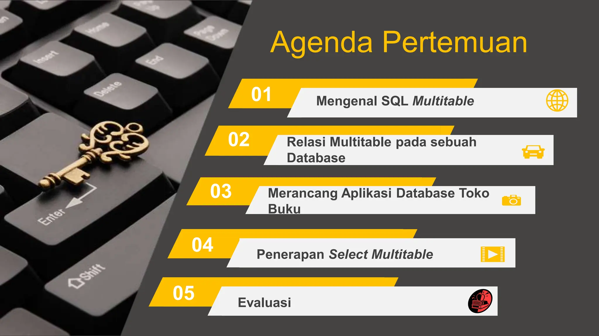 Dokumen ini menjelaskan tentang akses database multitable menggunakan SQL, dengan fokus pada pembuatan dan relasi antara tabel yang berkaitan dengan aplikasi database toko buku. Terdapat penjabaran mengenai syntax SQL untuk membuat tabel, menghubungkan tabel melalui foreign key, serta contoh implementasi query untuk menggabungkan data dari beberapa tabel. Beberapa fungsi agregasi dan jenis join juga dibahas untuk menampilkan data yang relevan dari tabel-tabel yang ada.