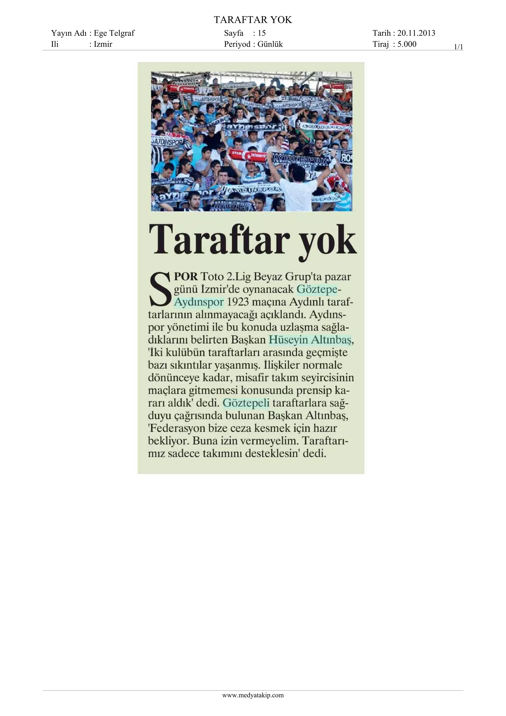 AYDINSPOR TARAFTARI IZMIR'EALINMAYACAK