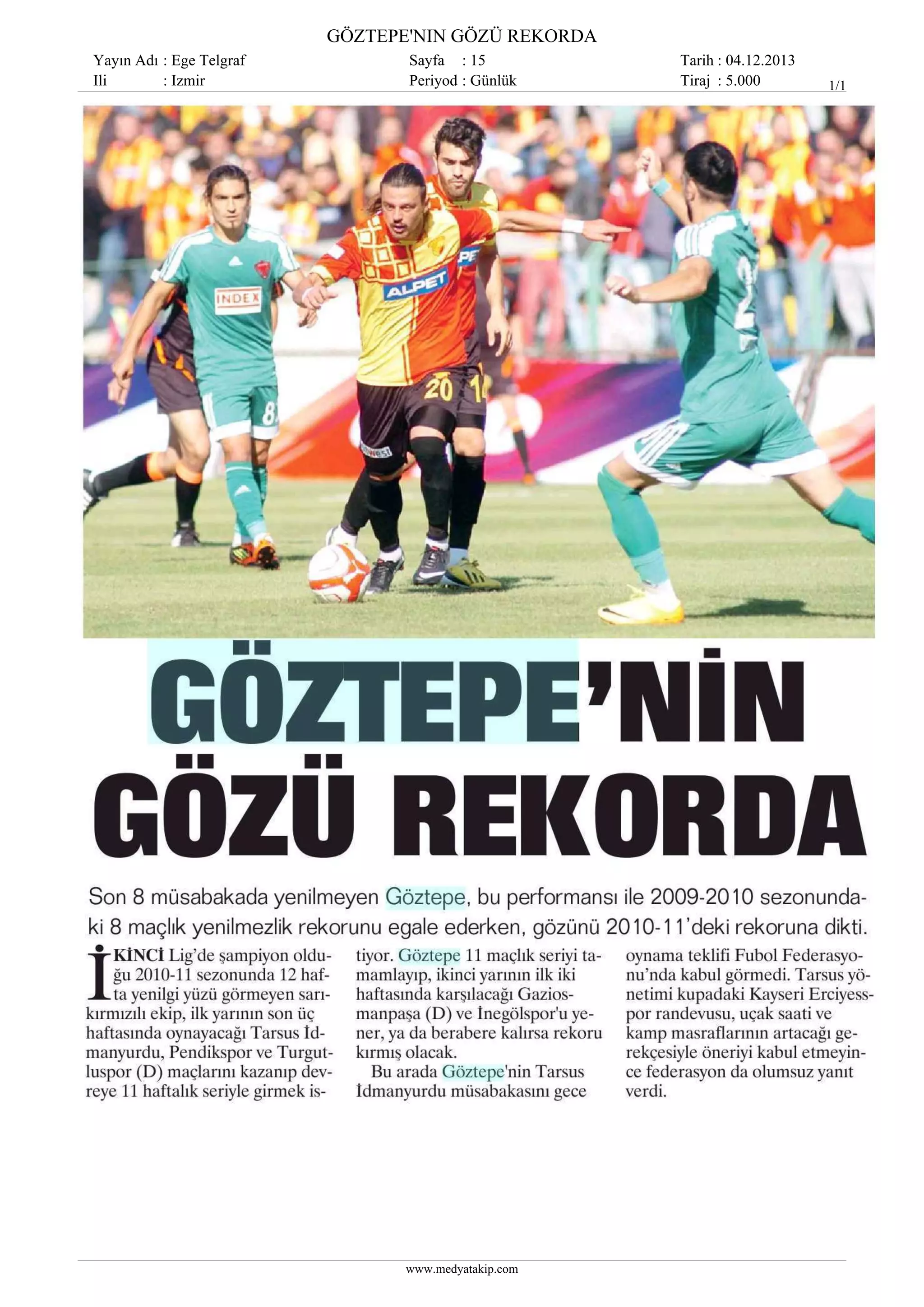 GÖZTEPE'NIN GÖZÜ REKORDA