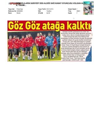 GÖZTEPE'DE VOLKAN ANTALYAKAMPINDA