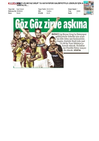 İKİNCİ LİG BEYAZGRUP' TA HATAYSPOR GALİBİYETİYLE LİDERLİK İÇİN AVANTAJ EL...