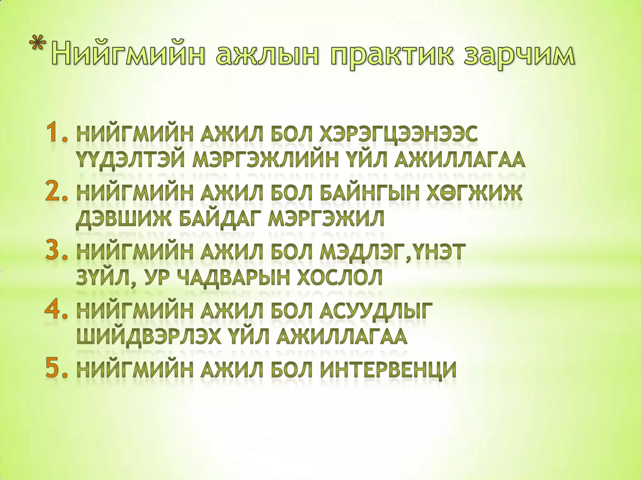 Batbayar presentation Нийгмийн ажлын талаарх ерөнхий ойлголт