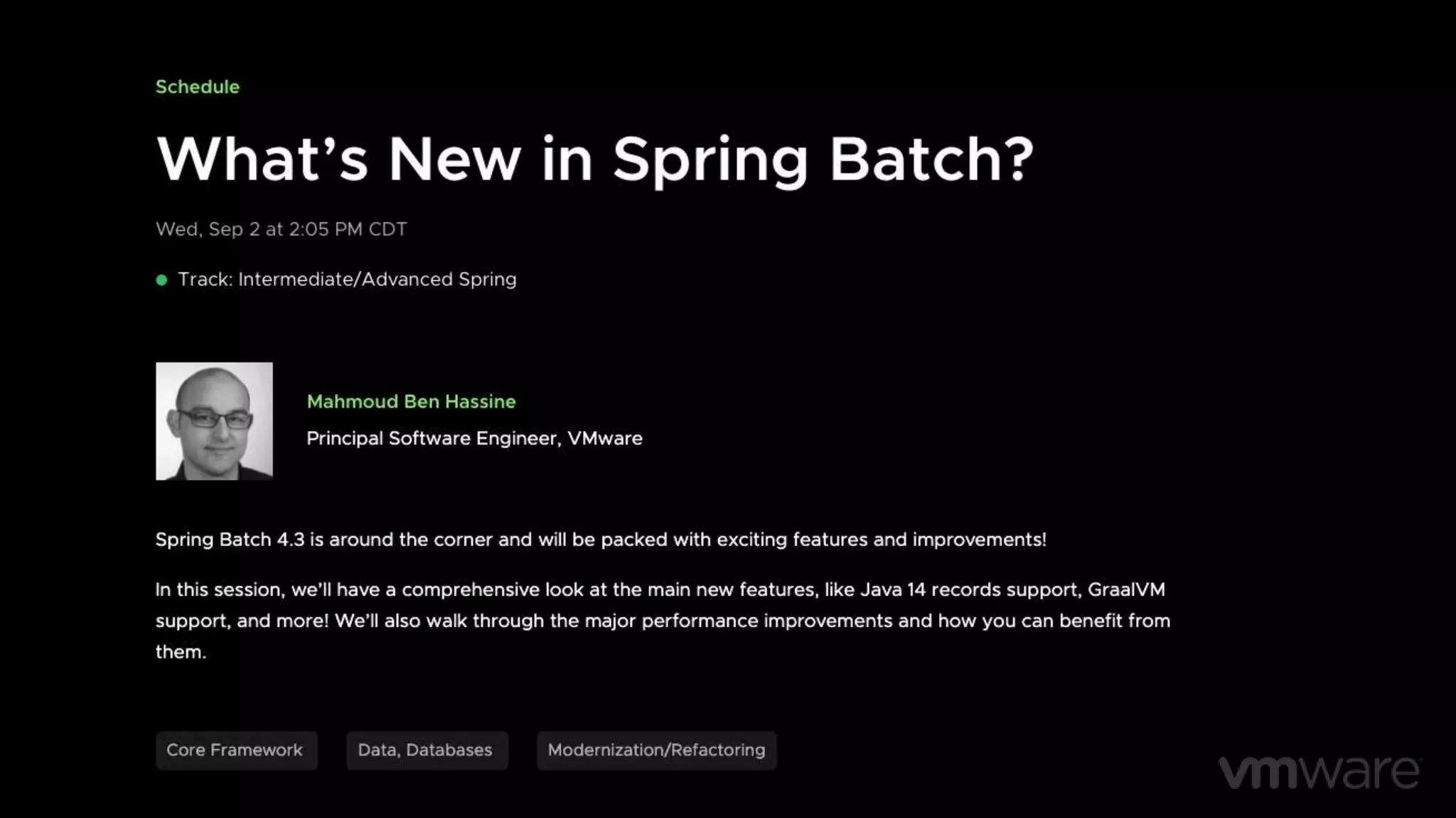 This document provides information about a session on batching in the modern enterprise using Spring Batch. The session will cover how batch processing is moving to the cloud along with Spring Batch. It will discuss concepts like jobs, steps, readers, writers, processors and error handling. It will also cover techniques for scaling batch processes and orchestrating them using Spring Cloud Task and Spring Cloud Data Flow.