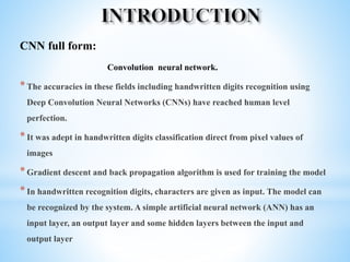 1. The document discusses using a convolutional neural network to recognize handwritten digits.