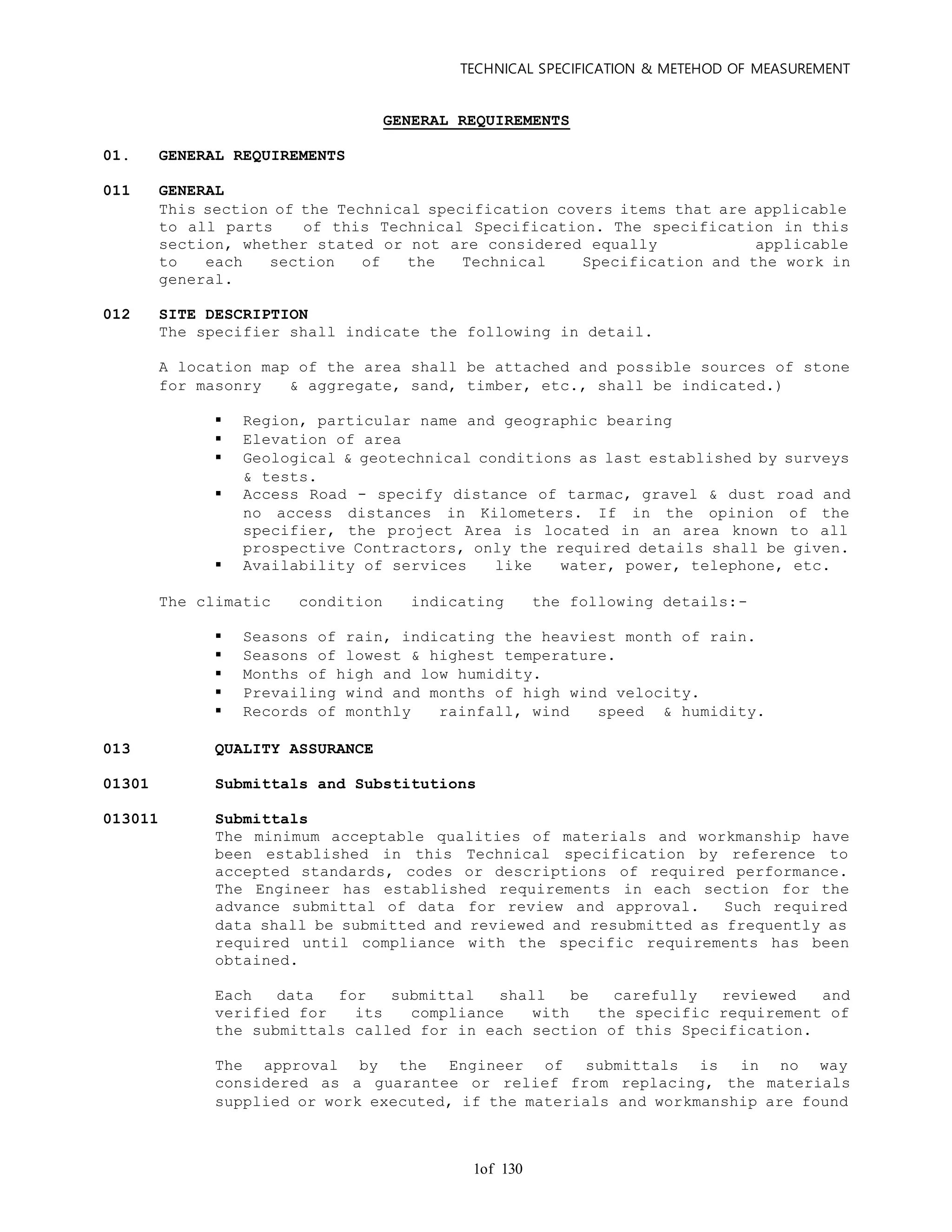 - Quality assurance procedures for submittals, substitutions, standards, testing, samples, and worker qualifications.