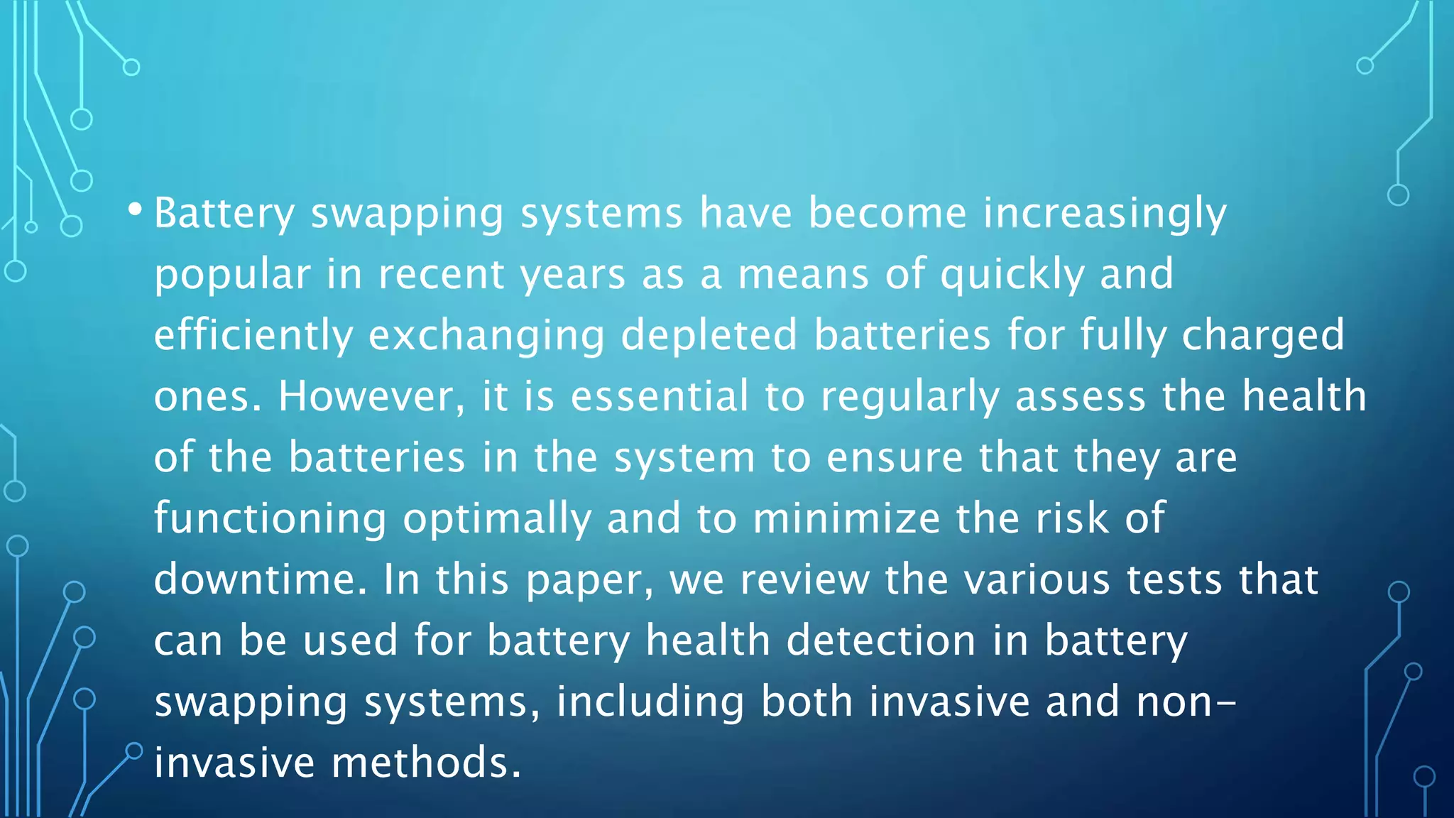 This document discusses battery health detection testing in battery swapping systems. It describes how battery swapping systems work and their advantages over traditional charging. It also explains that battery health detection tests are important to ensure only high-quality batteries are used. Common tests discussed include capacity, voltage, resistance, cycle life, age, and thermography tests. The cycle life test and capacity test are described in more detail. The cycle life test measures the number of charge-discharge cycles before capacity drops, while the capacity test measures the battery's current charge level. Non-invasive optical testing is also summarized as a method to evaluate batteries without disrupting their operation.