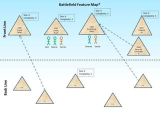 The document discusses 'battlefield agility', a methodology aimed at enhancing software development efficiency through teamwork and humane principles. It outlines key principles such as limiting multitasking, ensuring collaboration, and setting time constraints for project features which reportedly lead to faster deliveries and improved quality. The methodology has shown promising results, including a 30% reduction in time to market and a 28% improvement in quality based on field data from multiple clients.