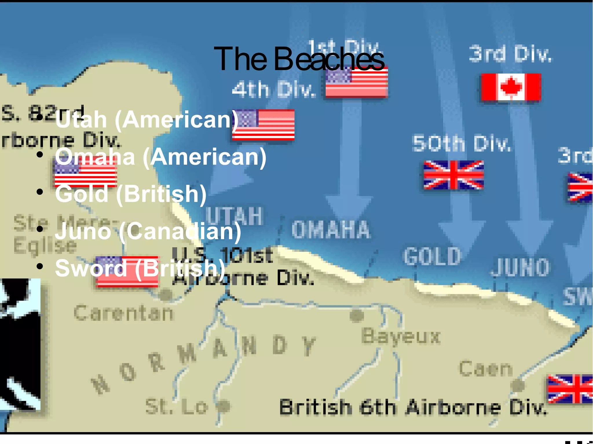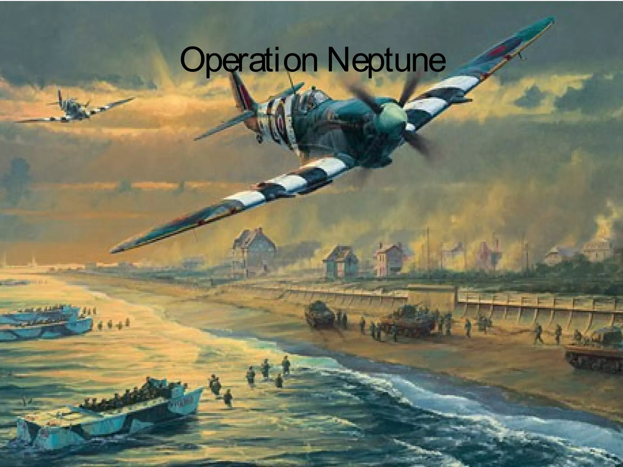 The document summarizes key details of Operation Neptune and D-Day. It describes the five beaches - Utah, Omaha, Gold, Juno, and Sword - where Allied forces landed on June 6, 1944. It provides details on the Canadian landings at Juno Beach, which saw heavy casualties but was captured within 42 minutes. Additional facts note Omaha Beach was the most fortified and casualties for both sides. The importance of D-Day was that it allowed Allied forces to advance into Nazi-occupied France on their path to Germany. Major battles after the landings included the battles for Bayeux, Caen, and Pegasus Bridge.