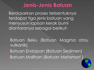 Batu andesit adalah batuan beku yang berasal dari magma gunung api yang membeku cepat di permukaan atau di bawah tanah. Batuan ini memiliki tekstur halus atau kasar serta struktur berlembar atau bertiang. Batu andesit dapat dimanfaatkan sebagai bahan baku pondasi bangunan, jalan, dan perkeretaapian karena sifat keras dan kuatnya.