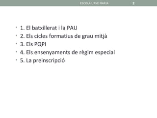1. CARACTERÍSTIQUES del BATXILLERAT