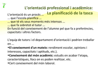 L’orientació és un procés ... La planificació de la tasca