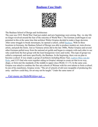 The Bauhaus was an influential art and design school established in Germany in 1919. It aimed to combine craft, design, and technology to produce functional products on a mass scale. The school was founded by Walter Gropius and emphasized the philosophy of "form follows function," using minimal materials and simple designs. Notable Bauhaus teachers like Gropius, Breuer, and Mies van der Rohe later migrated to the United States and spread the International Style.