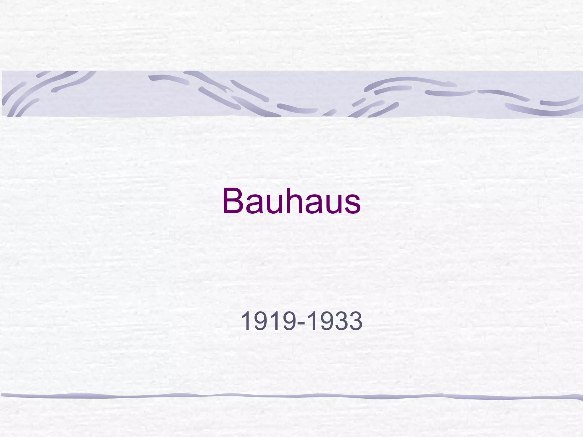 The Bauhaus was an influential art and design school that operated in Germany between 1919-1933. It was founded by Walter Gropius and brought together leading artists and designers including Johannes Itten, Wassily Kandinsky, Paul Klee, Lyonel Feininger, Josef Albers, and Anni Albers. The school emphasized combining craft, art, and technology and had a significant influence on modern architecture and design. Notable instructors developed new approaches to weaving, typography, furniture, and other art forms.