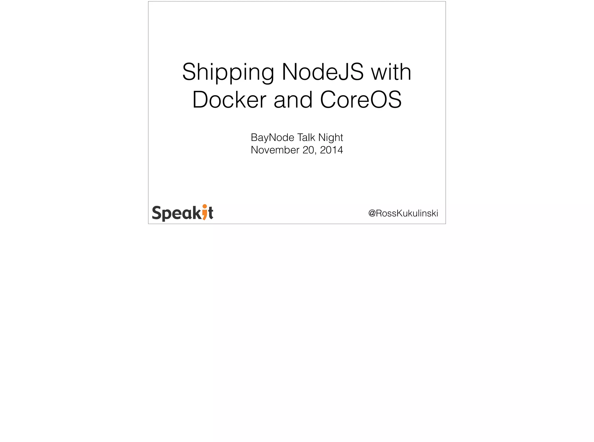 The document details a presentation by Ross Kukulinski on shipping Node.js applications using Docker and CoreOS, focusing on the development journey of the SpeakIt platform. It highlights the transition from a monolithic application to a microservices architecture, leveraging Docker for packaging and deployment, and CoreOS for scalable, fault-tolerant infrastructure. Key takeaways include the importance of service discovery, container orchestration, and managing application complexity to enhance deployment efficiency and application performance.