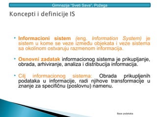 Sistem baza podataka je neizostavni deo informacionog sistema, čuva