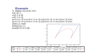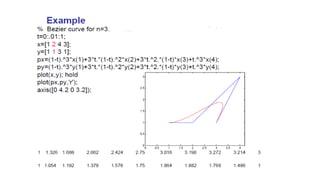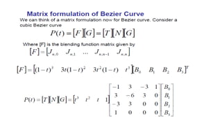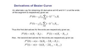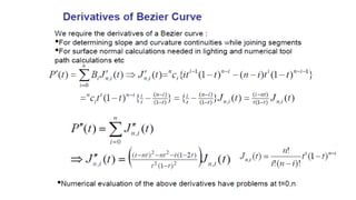 The presentation introduces group members and discusses Bézier and Hermite curves. It explains the formulation and properties of both types of curves, including how they are defined by control points, their polynomials, and methods for calculating points on these curves. Additionally, the document highlights design techniques and key characteristics of Bézier curves.