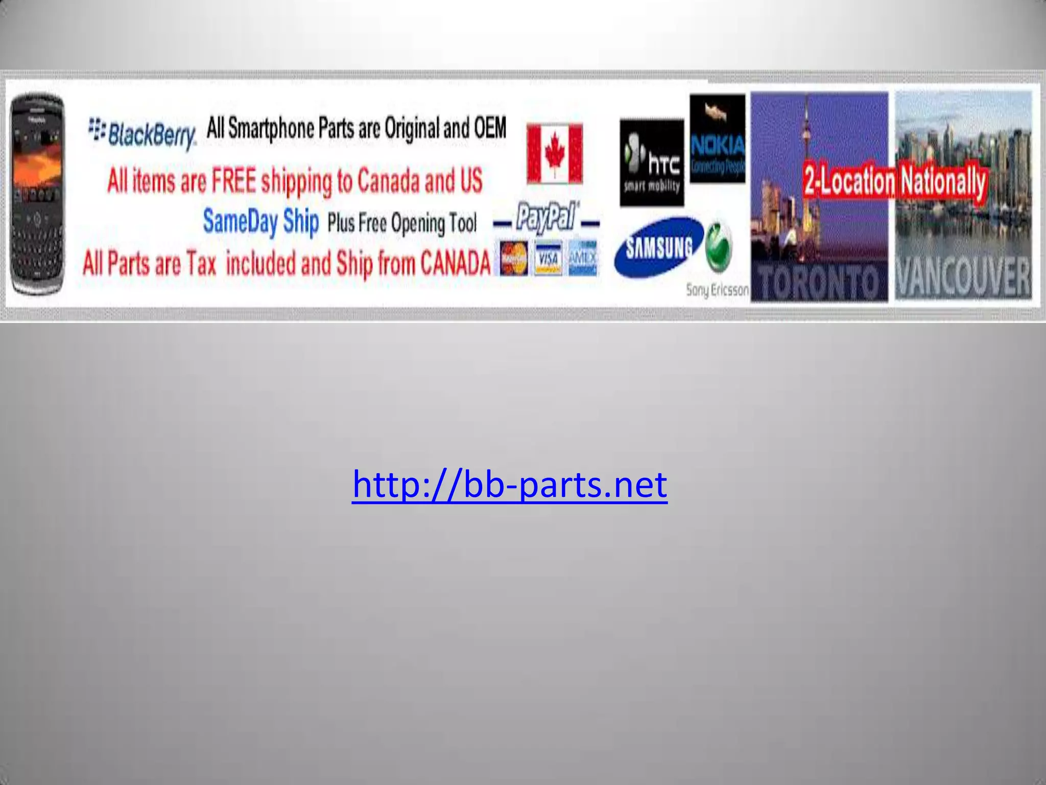 This document summarizes replacement parts available for various Blackberry phone models from bb-parts.net. It lists replacement screens, buttons, cables, and other parts for Blackberry Curve, Bold, Tour, and other models. It also provides the company address and contact information as located in Vancouver, Canada.