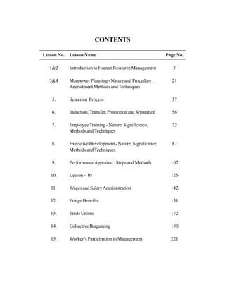 This document provides an overview of human resource management (HRM). It defines HRM as the process of maximizing employee and organizational effectiveness through programs and activities related to acquiring, developing, motivating and retaining employees. The key objectives of HRM are outlined as efficient utilization of employee skills, providing trained and motivated employees, increasing job satisfaction, communicating HRM policies, and developing quality work life. The scope of HRM discussed includes human resources planning, job and work design, recruitment, selection, placement, training, development, and performance appraisal.