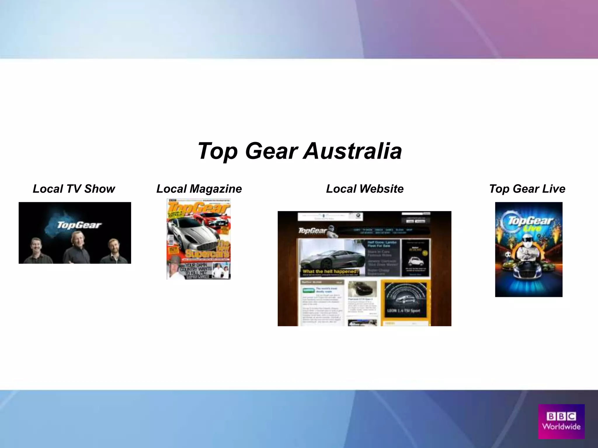 BBC's digital strategy focuses on creating value from content by reaching large audiences across platforms like BBC.com, which receives 1.9 million unique users and 44 million ad-enabled page views per month. BBC Worldwide partners globally to distribute popular content like Top Gear across territories, adapting it into local TV shows, magazines, websites and merchandise to monetize traffic while finding new audiences.