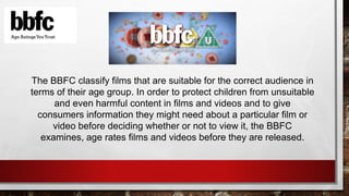 The BBFC classifies films to ensure age-appropriate content for audiences, especially to protect children from harmful material. The classification process involves detailed examinations by multiple examiners who assess various issues such as violence, language, and context before assigning age ratings. Ratings for home media like DVDs and Blu-rays are often more stringent due to the increased risk of underage viewing.
