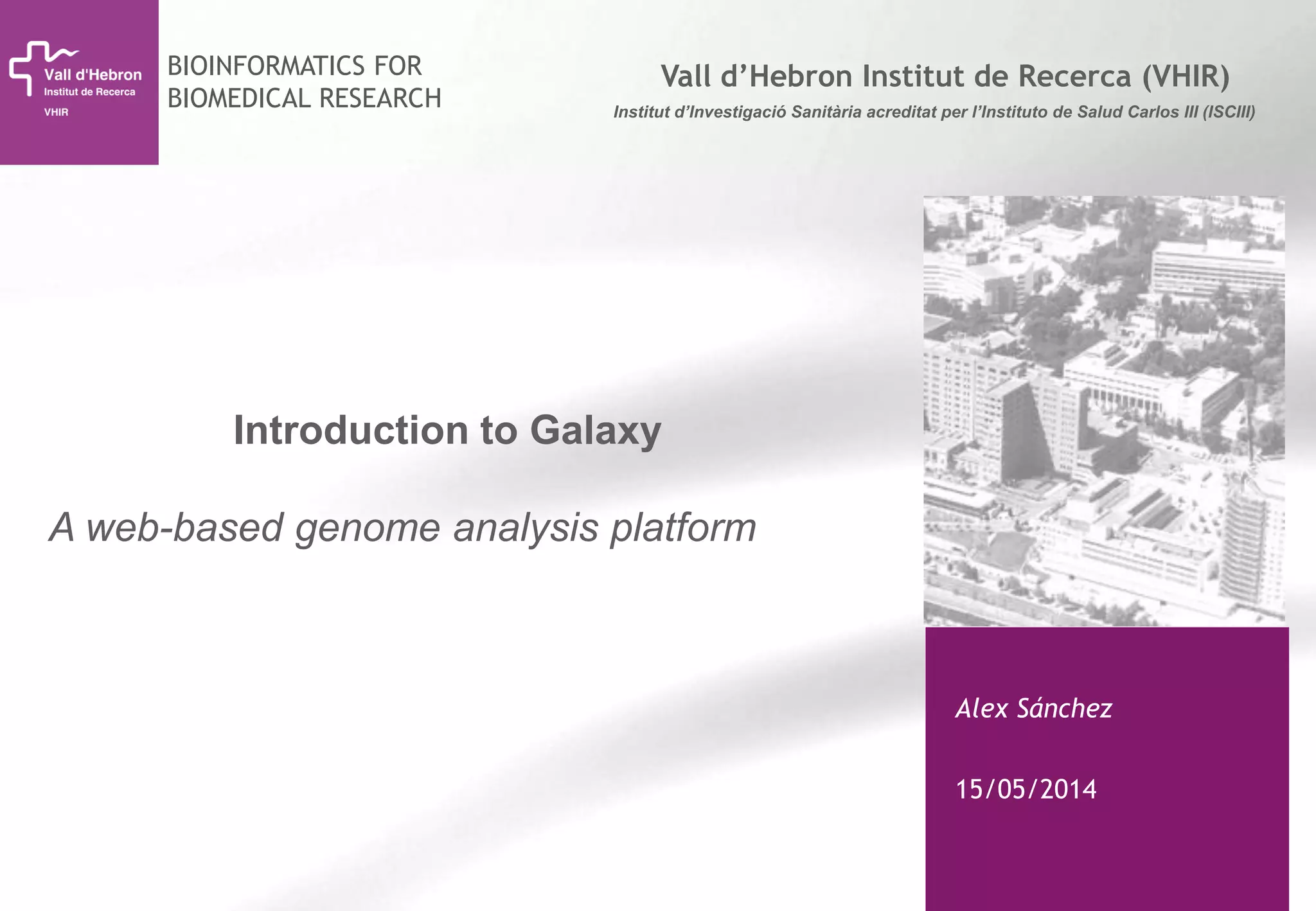 The document provides an introduction to Galaxy, a web-based platform for genome analysis that integrates various computational tools for bioinformatics. It covers the Galaxy interface, how to input and analyze data, and includes exercises for next-generation sequencing analysis. The document also outlines features like history tracking and workflow creation to facilitate repetitive analyses.