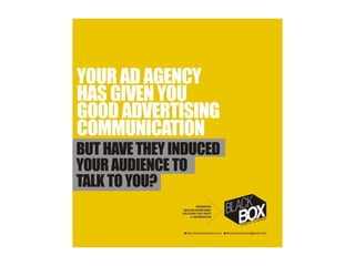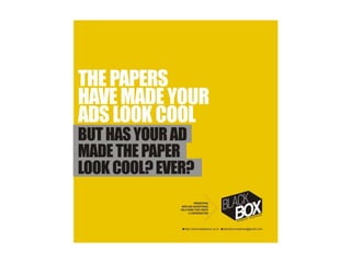Blackbox Communications is a team of advertising professionals with over 15 years of experience, offering a wide variety of services including print and digital advertising, branding solutions, and website development. They differentiate themselves with special introductory offers for first-time clients, such as free campaigns or stationary with certain purchases. The agency emphasizes creativity and a willingness to take on new challenges, supported by a network for outsourcing when needed.