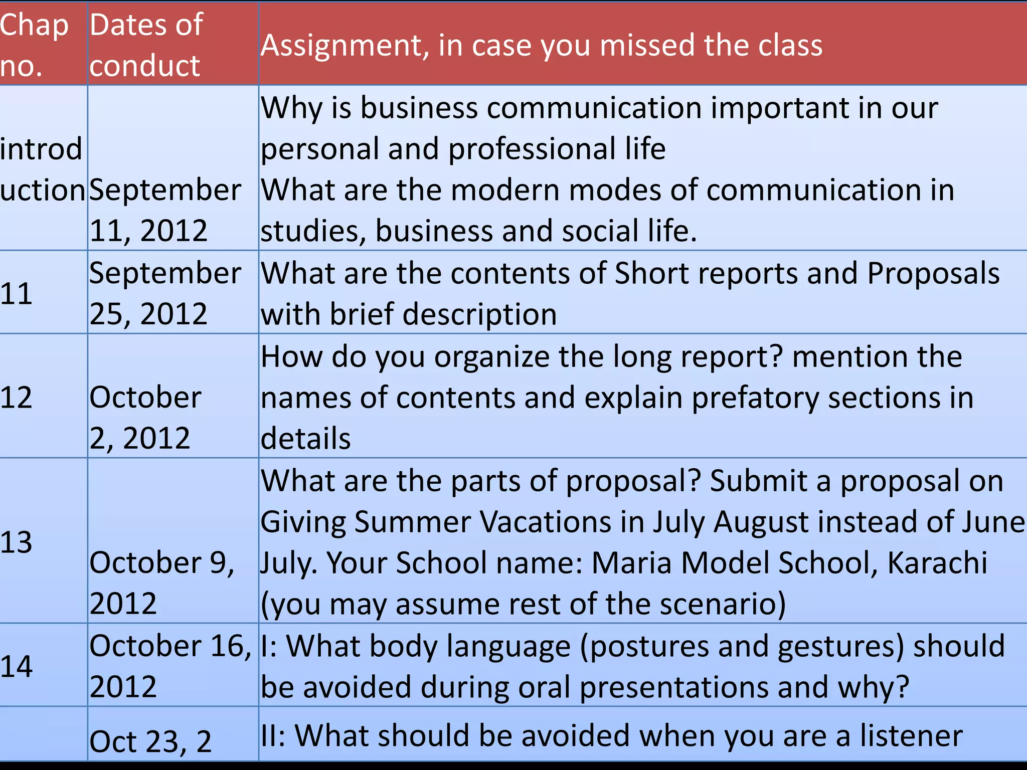The compensatory assignment has a deadline of Friday, December 21st, 2012 and must be neatly printed and bound, with no handwritten assignments accepted. Students must complete the assignment in their own words and not copy others, as any identical assignments will receive a grade of zero. The document provides details of missed class assignments on various communication topics that students can complete for credit.