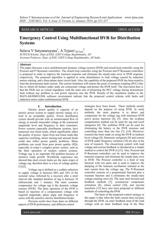 The paper presents a multifunctional dynamic voltage restorer (DVR) and a closed loop control using posicast and p+resonant controllers to enhance transient response and eliminate steady-state errors. It addresses disturbances in load voltage caused by induction motor starts and short circuit faults, demonstrating that the DVR can limit downstream fault current while protecting itself and restoring the point of common coupling (PCC) voltage. Simulation results in MATLAB/Simulink confirm the effectiveness of the proposed control scheme in maintaining voltage quality during power distribution challenges.