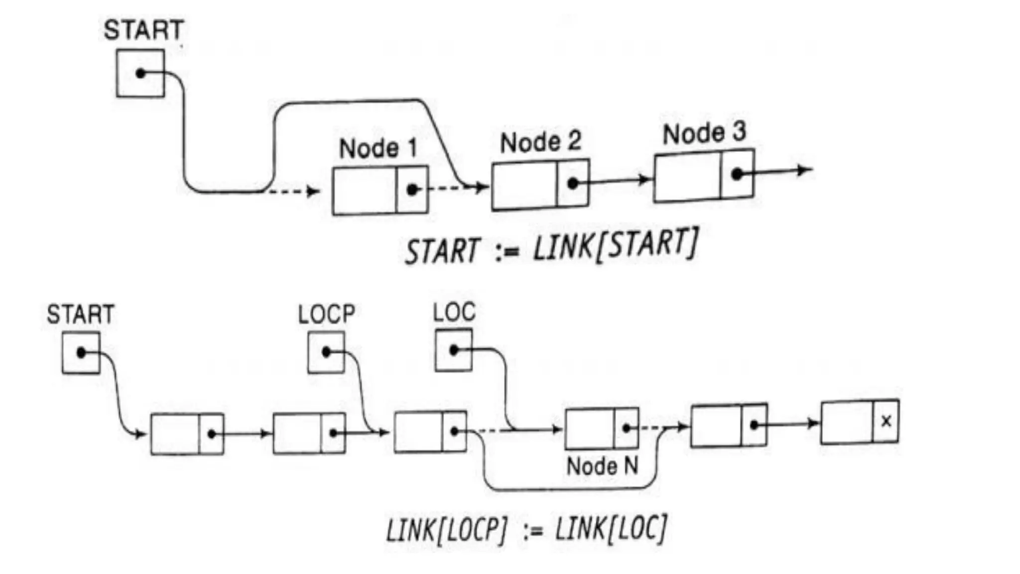 3. Common operations on linked lists include traversal, search, insertion at head/specific point, and deletion by adjusting pointers. Memory for new nodes comes from a free list, and deleted nodes return there.