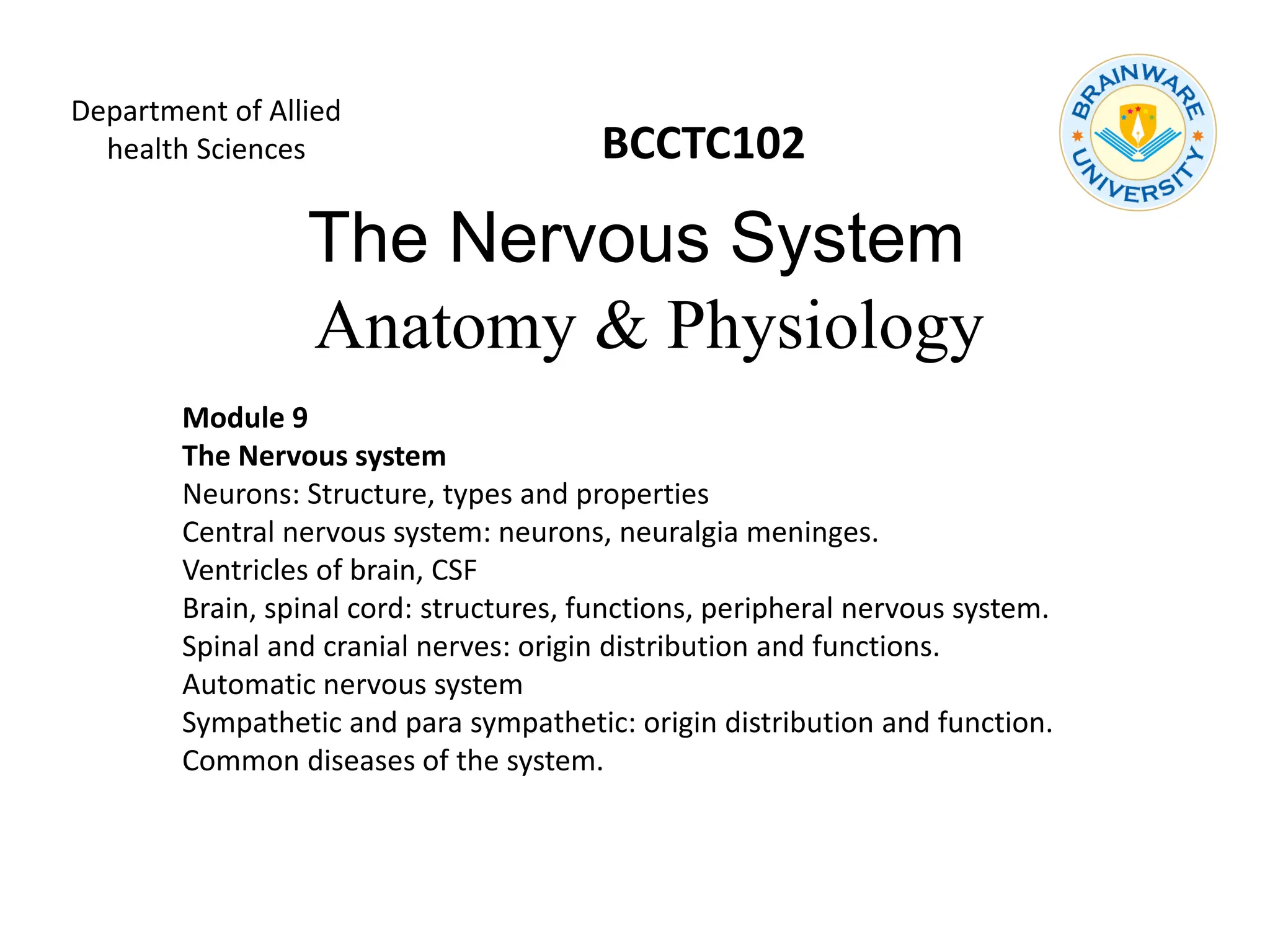 The document provides an overview of the anatomy and physiology of the nervous system, detailing the structure and classification of neurons, the central and peripheral nervous systems, and the functions of different types of nerves. It explains the processes of sensory input, motor output, and the role of neurotransmitters in nerve impulse transmission. Additionally, the document describes the regions of the brain, cranial and spinal nerves, and key functions related to the automatic nervous system.