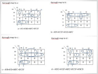 3. The document concludes by designing a BCD to 7-segment display decoder circuit and explaining the application of gray code in shaft encoders.