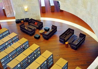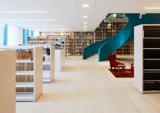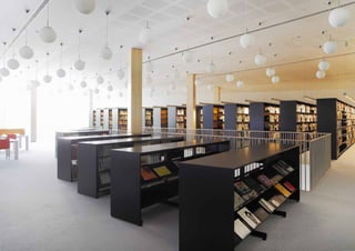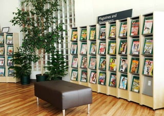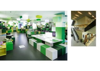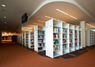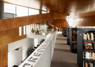 The document provides an overview of 16 library projects from Scandinavia, Europe, and the Middle East. It highlights projects such as a new campus library for Zayed University in Abu Dhabi featuring tiered amphitheater-style shelving, a cultural center library in Copenhagen with youth and media sections, and a new national library built in Kuwait City linking the country's past and future. The document also includes case studies of innovative shelving designs for specific libraries.
