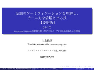 BizCOLLEGE Premiumセミナー(2012年7月20日実施)の講師プレゼンテーション資料です。セミナーの概要:http://bizpremium.nikkeibp.co.jp/innovations/gamification/20120612/000026